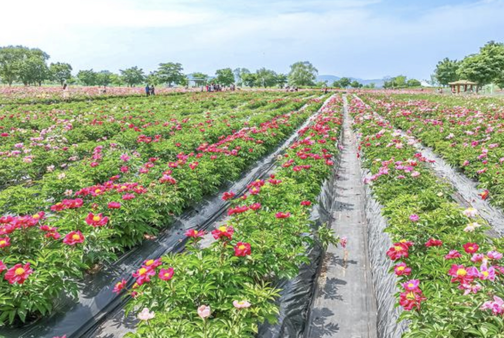 한 장소에서 청보리와 작약을 즐길 수 있다.