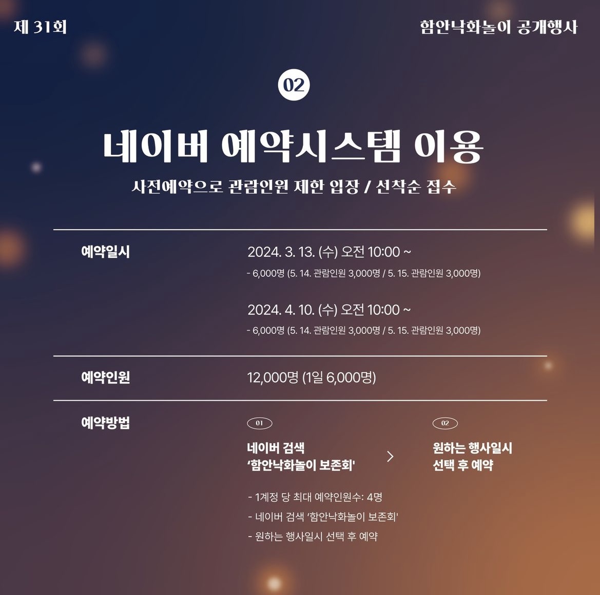 예약방법: 네이버에서 ‘낙화놀이보존회’ 검색 후 원하는 날짜 예약, 1 계정 당 4명까지 예약가능